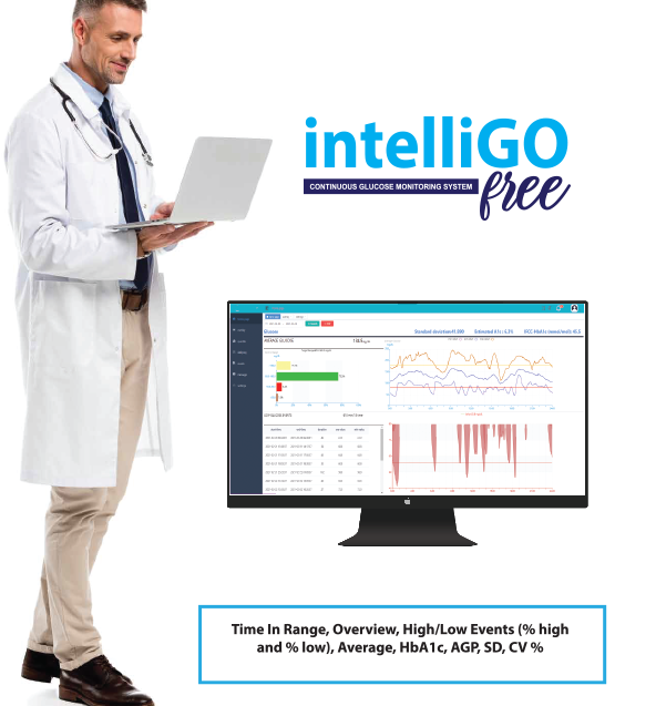 Vistas generales, graficas y reportes de tu glucosa tanto del presente como del pasado, patrones de glucosa, tendencias y estadísticas. El portal gratuito de IntelliGO es una herramienta sumamente útil para el HCP le permite al mismo customizar el tratamiento de la diabetes y a tomar decisiones mas eficientes para así ofrecer el mejor soporte al paciente tanto en persona como remotamente (telemedicina).